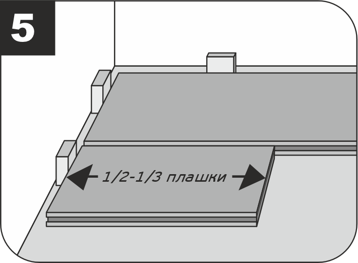 7.4.1 Плашки следующего ряда соединяются сначала по короткой стороне. После этого их нужно соединять по длинной стороне с предыдущим рядом.